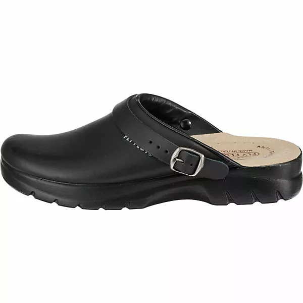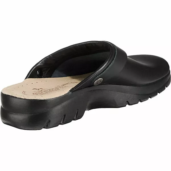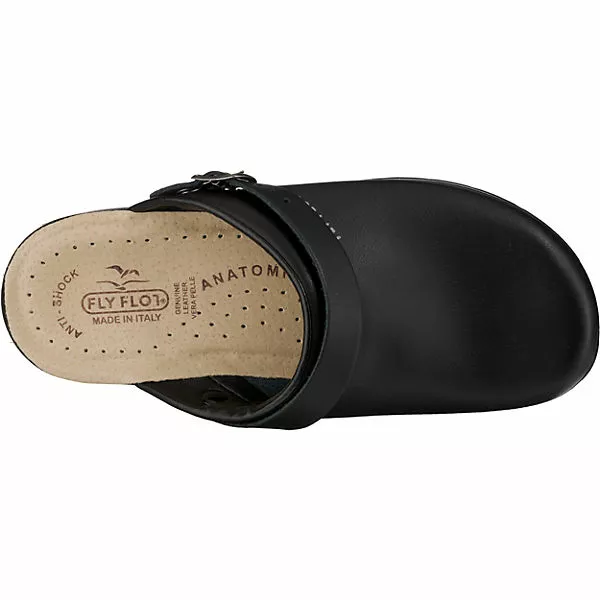 Hochwertig verarbeitete FLY FLOT Komfort-Pantoletten aus fein genarbtem Echtleder. Die leicht gepolsterte Kante am Spannbereich verleiht ein angenehmes Tragegefühl.