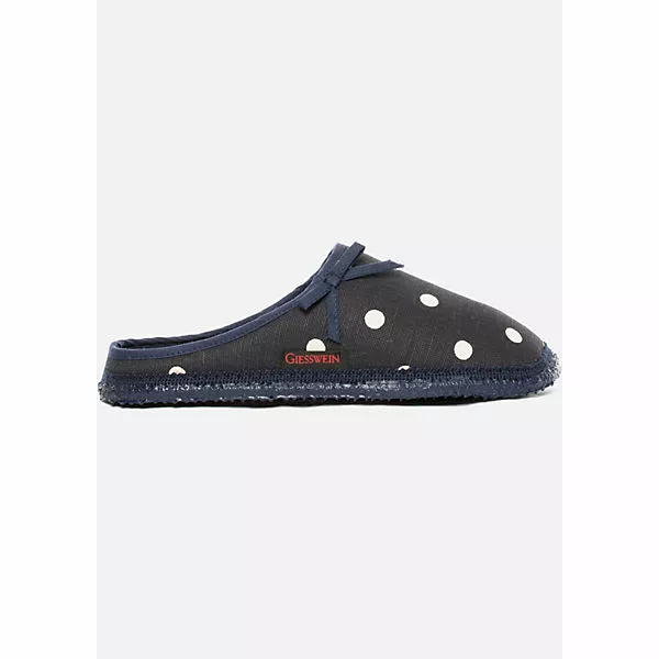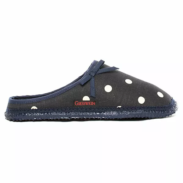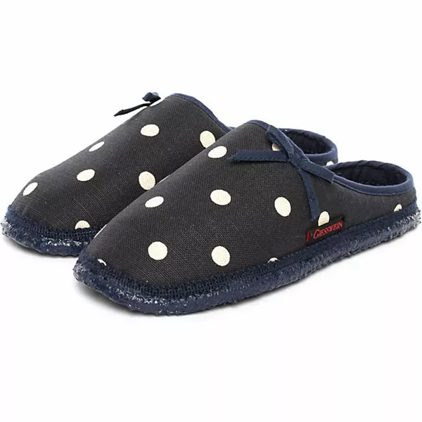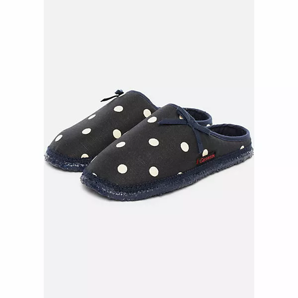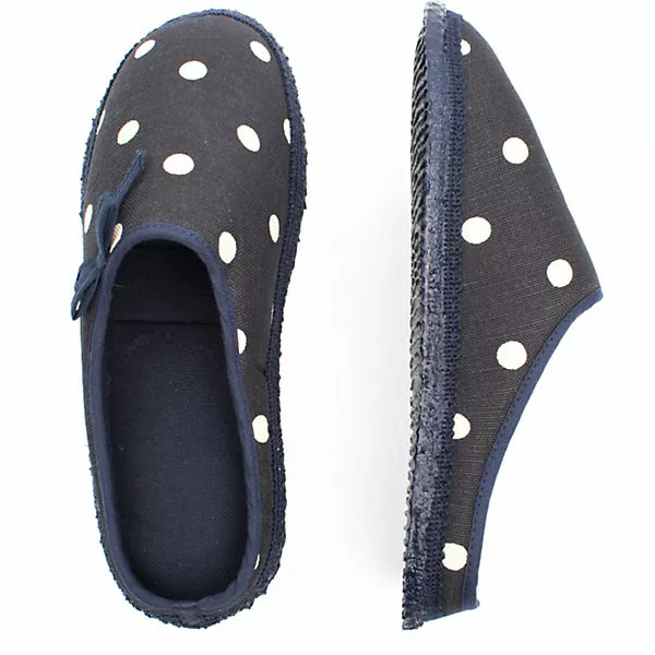 Süß und mädchenhaft ist der Pantoffel Plein mit Tupfen und Masche. Der hochwertige Baumwollstoff und die superweiche Naturlatexsohle machen ihn zum perfekten Wohlfühlschuh für daheim. Erhältlich in Natur, Rot und Dunkelblau. Obermaterial 100% Baumwolle. Die Laufsohle ist rutschfest und dennoch leicht und flexibel.
