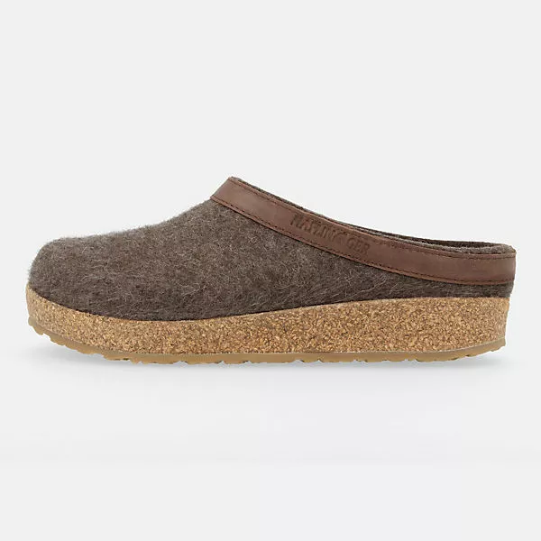 Der Einschlupf ist mit einem dekorativen und stabilisiernden Lederband verziert. Zudem verleiht Ihnen das anatomisch geformte Kork-Latex-Fußbett die optimale Haltung und trägt somit zur Fußgesundheit bei. Dazu kommen eine gelenkschonende Abrollzone sowie der fußfreundliche Zehengriff. Die robuste Laufsohle aus rutschfestem Thermogummi weist Feuchtigkeit und Schmutz ab. Der Haflinger Grizzly zählt zu unseren absoluten Klassikern.