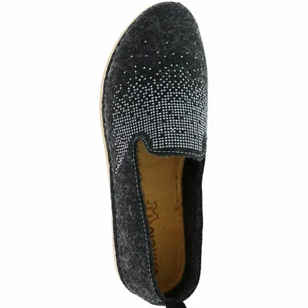 Das Obermaterial aus textilem Filzmaterial punktet mit den kleinen Glitzersteinchen am Spann und mit dem leichten und durchlässigen Stoff. Die strukturierte Laufsohle aus Synthetik sowie die Lederinnensohle sorgen für einen angenehmen Stand und Gang.