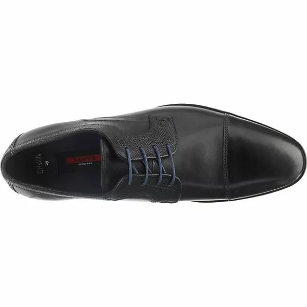 Das Obermaterial der LLOYD ORWIN Business-Schnürschuhe besteht aus echtem Kalbsleder, das zum Teil in Reptiloptik strukturiert ist. Die flexible, rutschhemmende Laufsohle ist strukturiert.