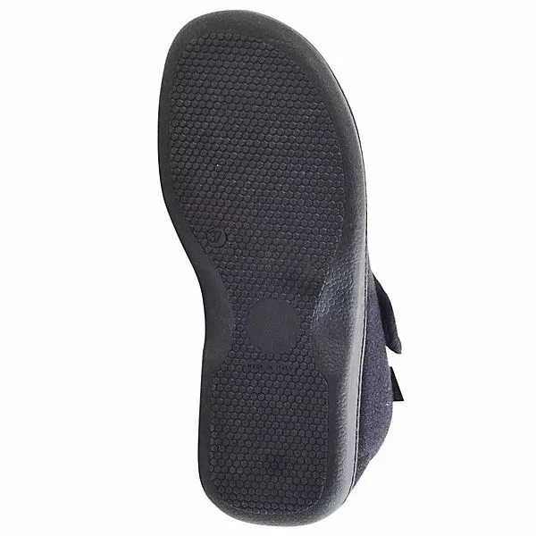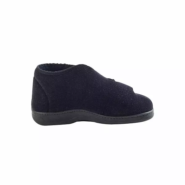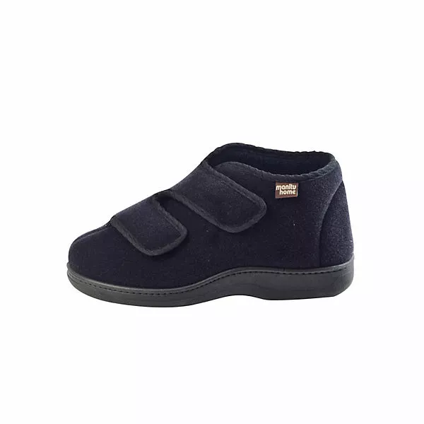 Bei diesem Produkt handelt es sich um einen Schuh aus der Kategorie Klassische Hausschuhe für Damen. Als Obermaterial wurde Textil verwendet und im inneren Bereich des Schuhs wurde Frottee-Futter und Textildecksohle verarbeitet. Die Schuhweite dieses Artikels ist bequeme Weite und somit etwas breiter. Als Verschlussart wurde Klettverschluss gewählt und die PVC-Sohle rundet das Produkt ab.