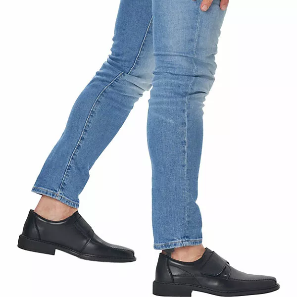 Das hochwertige Obermaterial aus Glattleder und Lederimitat ist weich und gleichzeitig strapazierfähig. Durch den Klettverschluss kannst du die Schuhe perfekt deinem Fuß anpassen und er lässt sich gleichzeitig gut an- und ausziehen. Die Antistress-Innensohle bietet dir optimalen Tragekomfort. Ein extra weites Fußbett macht Schuh zudem besonders komfortabel. Egal ob zum Anzug, im Büro oder zur Jeans am Abend, dieser Schuh verleiht deinem Outfit einen eleganten Look.